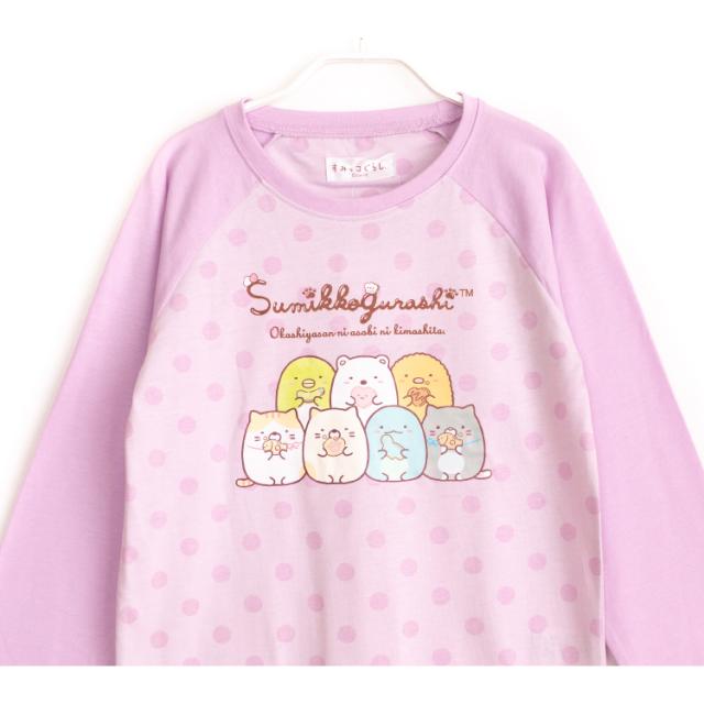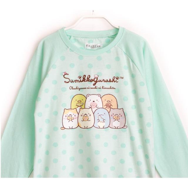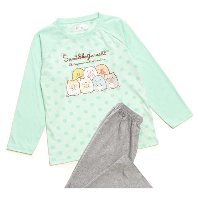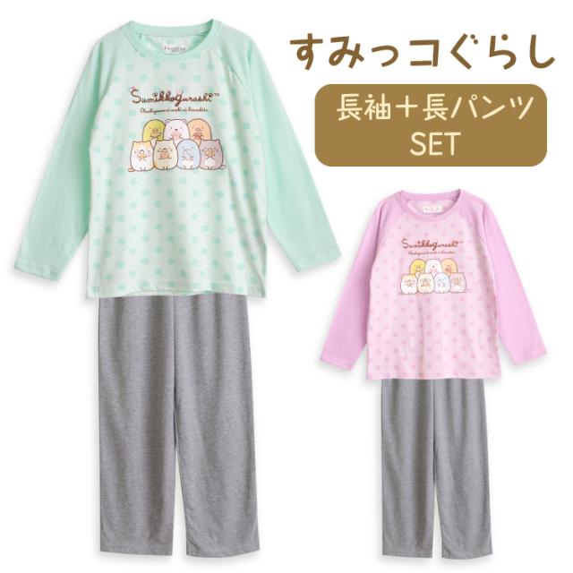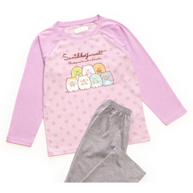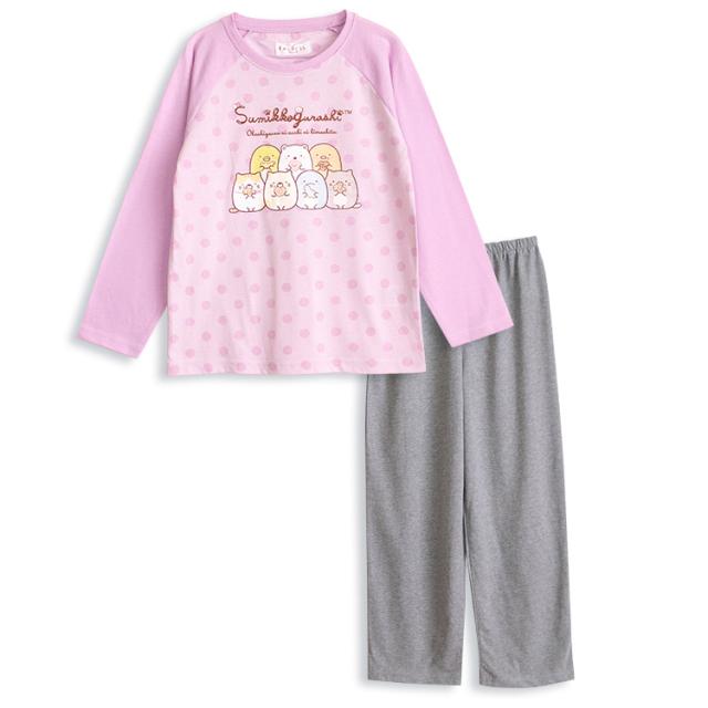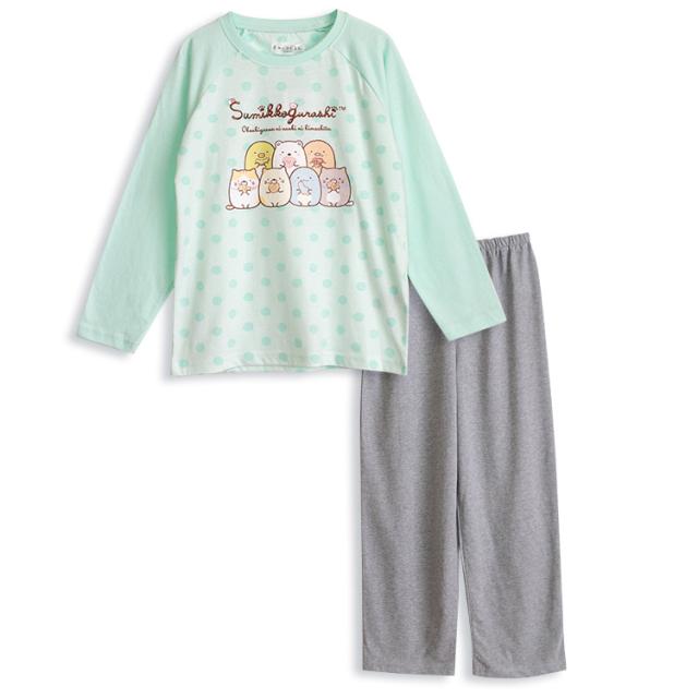 すみっコぐらし パジャマ キッズ 女の子 長袖 春 秋 Tシャツ素材 エメグリーン パープル 100 110 120 130 140 150 160 子供 ガールズ ジュニア しろくま とかげ ねこ ぺんぎん? とんかつ