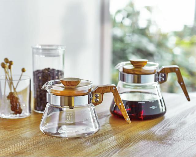 フタと取っ手がオリーブウッド素材でできたコーヒーサーバー。