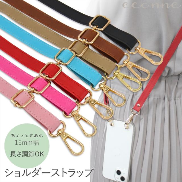 ショルダー ストラップ スマホ 斜めがけ ショルダー スマホショルダー 1.5cm 長さ調節 ロングストラップ ショルダーバッグ ショルダータイプ ポシェット 肩掛け PUレザー バッグ ポーチ 360度回転 2点 ネックストラップ 大人かわいい ゴールド 金具