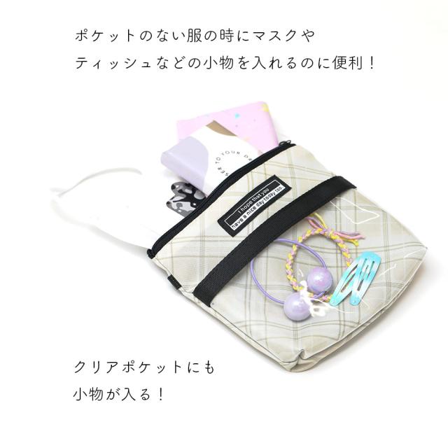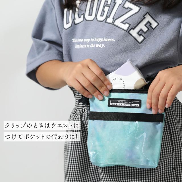 ポケットポーチ 移動ポケット クリア 見せる収納 2way 抗菌 防臭 マルチポーチ マルチポケット ポケットバッグ ティッシュケース ハンカチポーチ マスク 入れ マスクケース サコッシュ 透明 クリップ ショルダー 子ども キッズ 小学校 女の子 子供
