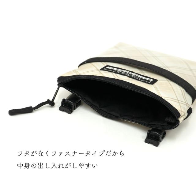 ポケットはファスナー付きのメインポケットと外側のクリアポケット。大きめサイズで使いやすい仕様です。