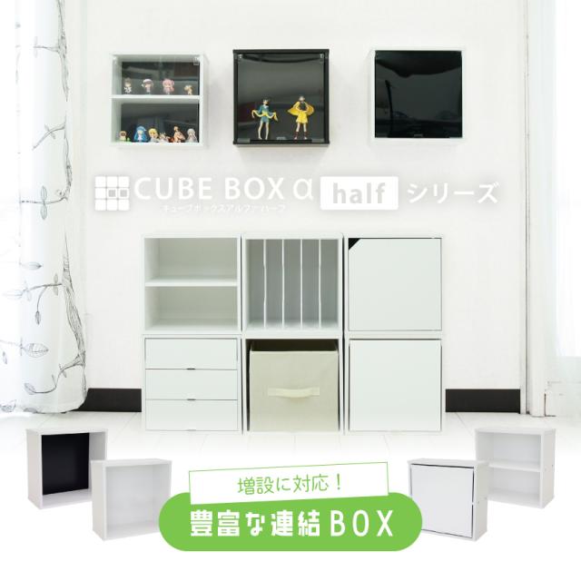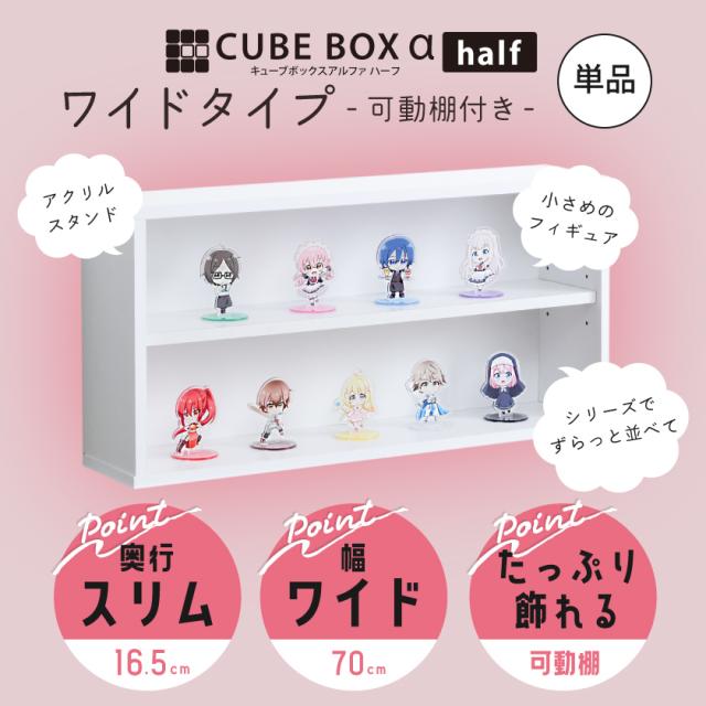 薄型 ディスプレイ棚 キューブボックスα ハーフワイド 【送料無料】 卓上 木製 コレクションラック コレクションボード アクスタ ディスプレイ 横長 フィギュア棚 可動棚付き