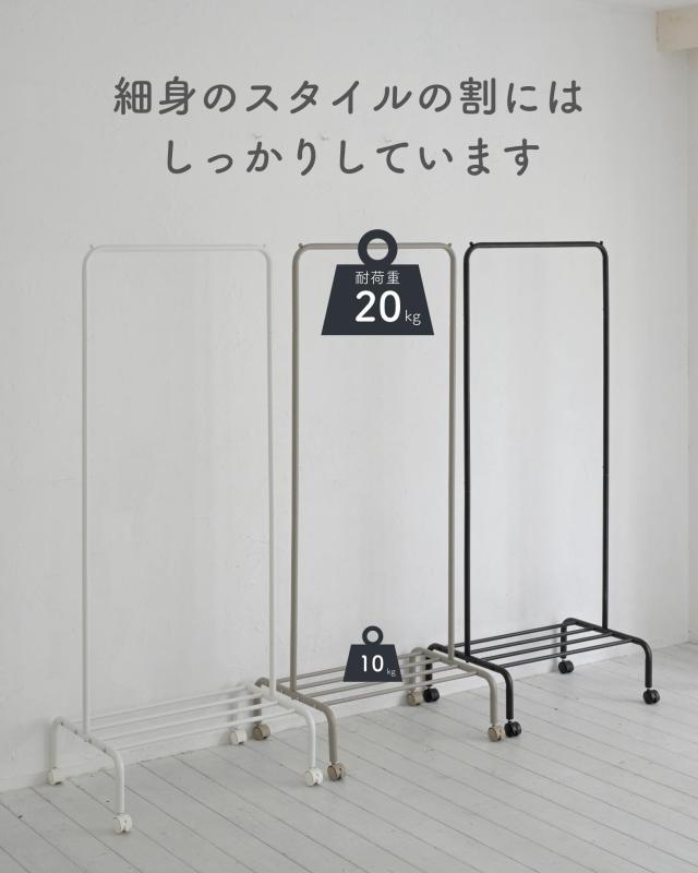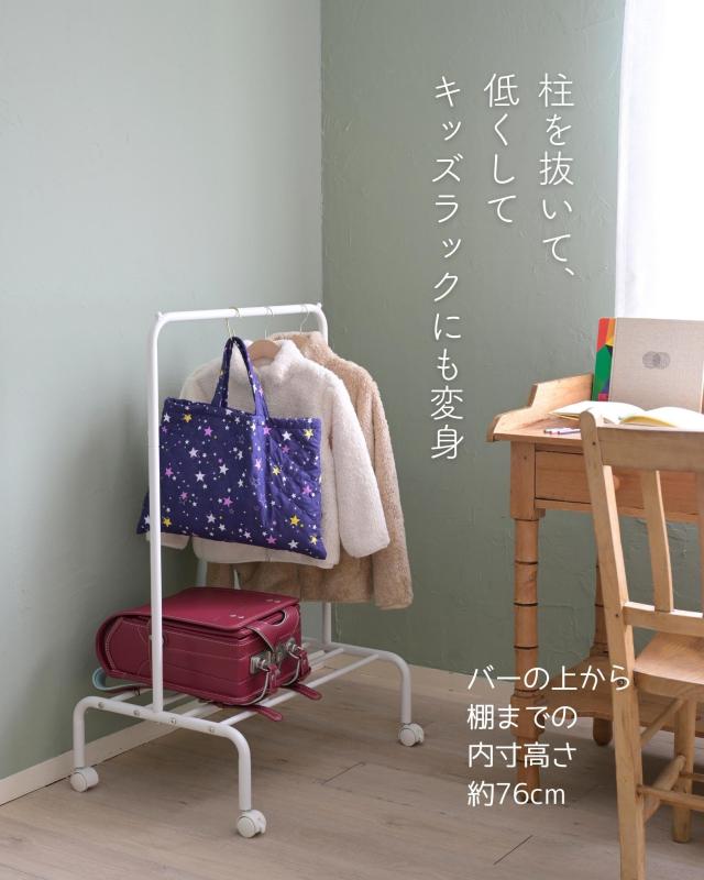 | 商品説明 | ●シンプルですっきりな外観のハンガーラック ●細身ながらしっかりしたつくり ●服の下にモノが置ける棚付き ●掃除や模様替えもしやすいキャスター付き ●お部屋になじむ、ツヤのないマットな質感 ●バーには滑り落ち防止の突起付き(溶接) ●ハンガーバー内寸:幅52 高さ130cm、ハンガーバー径19mm ●棚サイズ:幅54.5 奥行28.5cm、棚隙間7.5cm ●耐荷重:ハンガーバー20kg、棚10kg、全体30kg ●棚下隙間:高さ18cm ●キャスター4個(うちストッパー付き2個) ●分割式の支柱のうち、1本を抜いて組み立てると、高さ約97cmのキッズラックに変身(内寸高さ約76cm) プラスドライバーをご用意ください。(六角レンチ、スパナは付属) ※2023年12月21日より、グレージュを追加 |
