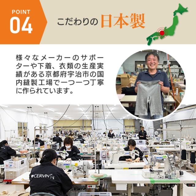 様々なメーカーのサポーターや下着、衣類の生産実績がある京都府宇治市の国内縫製工場で作られています。