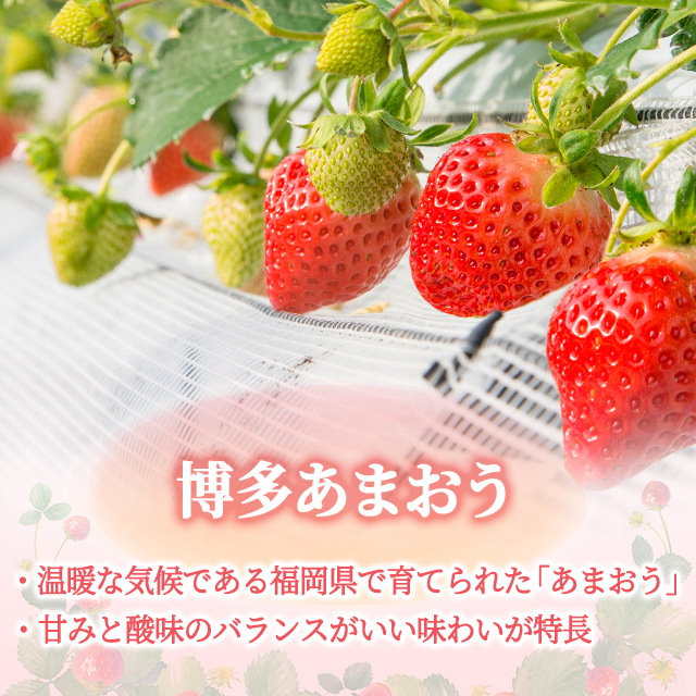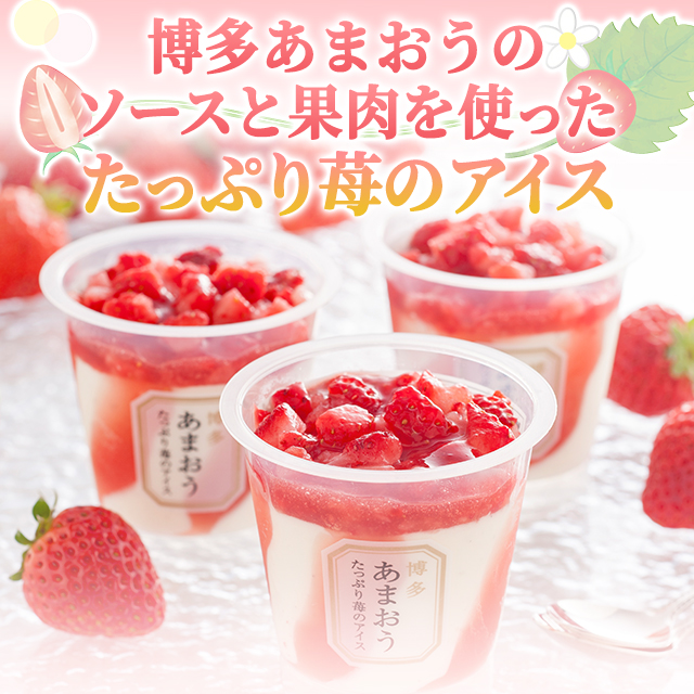 ・博多あまおうのソースが入ったアイスの上に、ごろっと果肉をのせた、いちご尽くしのアイスです。