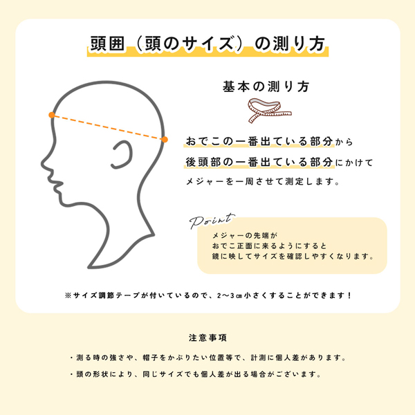 頭囲:54.5-57.5cm(調節可)