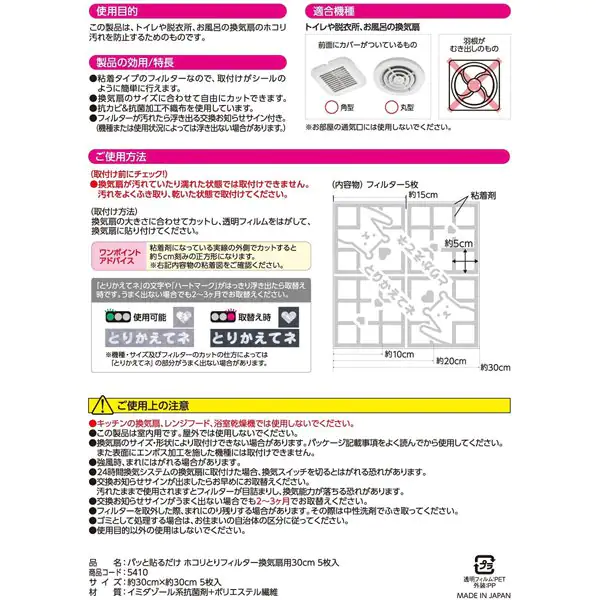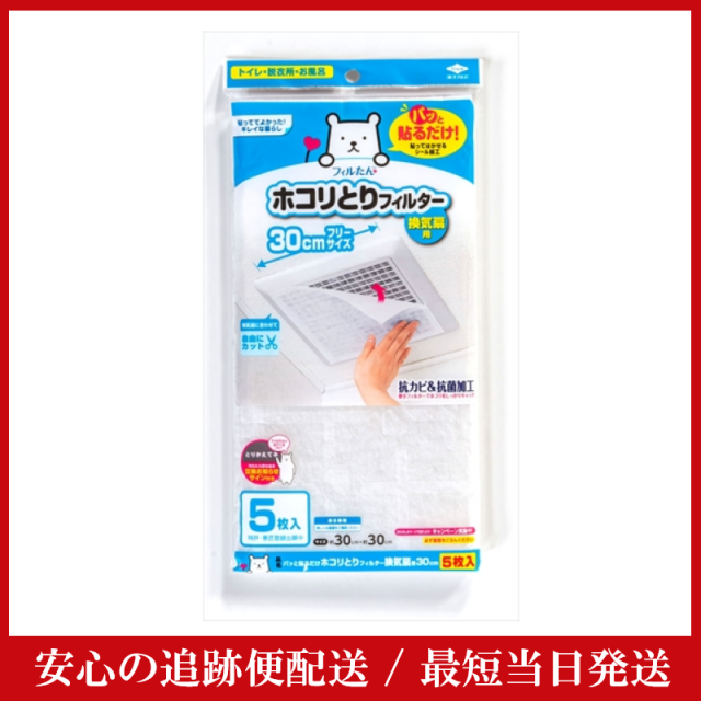 パッと貼るだけホコリとりフィルター換気扇用30cm 5枚入 東洋アルミ フィルター キッチン 台所用品 掃除 貼るだけ 換気扇 トイレ お風呂 洗面所 脱衣所 お風呂用換気口 換気扇シート キッチン 消耗品 埃 日本製