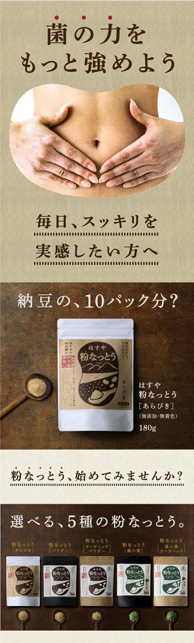 【メール便 送料無料】 粉なっとう[あらびき] 180g (旧 粉末納豆)ポリアミンでツルツル肌を応援!!小さじ1杯で10パック分の納豆菌♪栄養の玉手箱!#四国阿波はすや