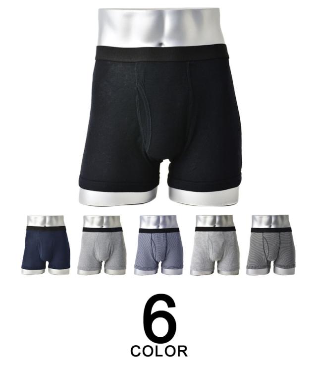 前開き、幅広のゴムウエスト仕様の、ベーシックなデザインのボクサーブリーフパンツ。