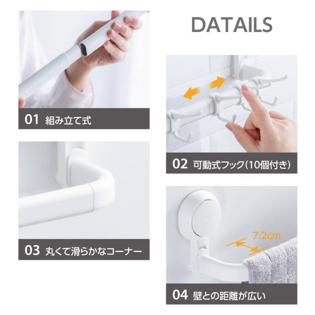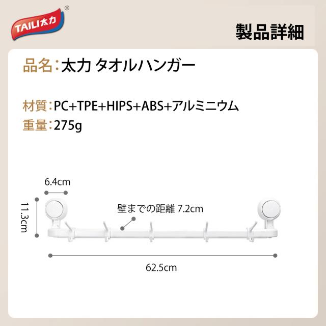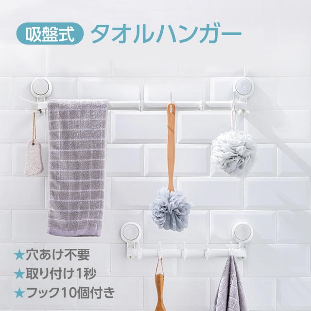 タオルハンガー 吸盤 強力 フック10個付き タオル掛け 洗面所 浴室 キッチン 壁 トイレ 玄関 おしゃれ 新生活 taili-towel