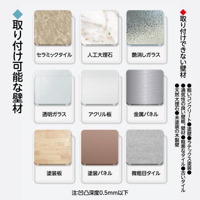 穴あけ・糊付け不要。壁に押し付けるだけの簡単設置。