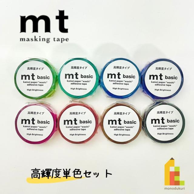 【送料無料】【1,000円ポッキリ企画】 マスキングテープ カモ井加工紙 mt 高輝度単色 8巻セット (15mm×7m・個包装) MT1000-18