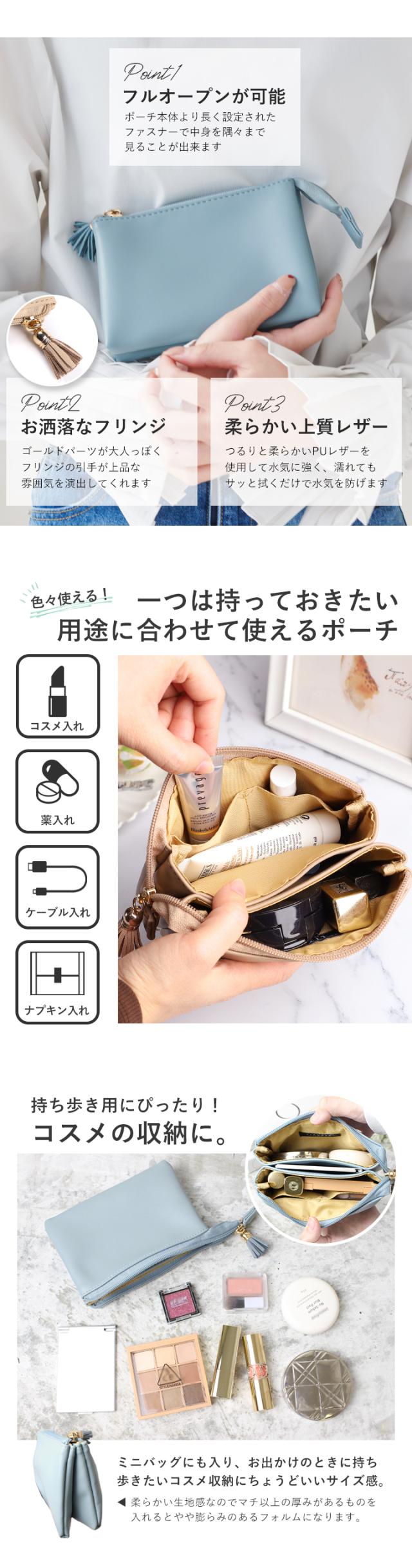 ポーチ コンパクト タッセル 小物入れ 化粧ポーチ コスメポーチ ミニバッグ フルオープン サニタリーポーチ iqosケース アイコスケース 薬入れ レディース おしゃれ LIZDAYS リズデイズ スタイルオンバック【lz-49302】