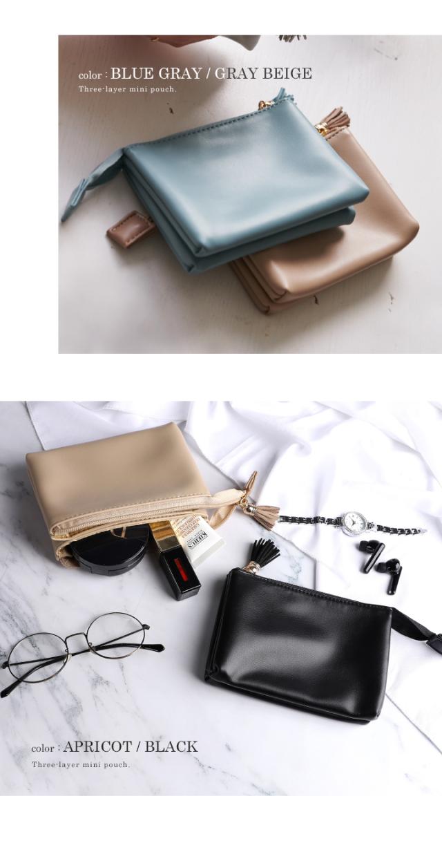 - アプリコットを購入しました。 手触りの良い柔らかな合皮で、高級感があります。 2つのポーチを合わせたような作りで、合わせた所もポケットとして使えるので便利。 前述のとおり2つのポーチが合わさった形状の...