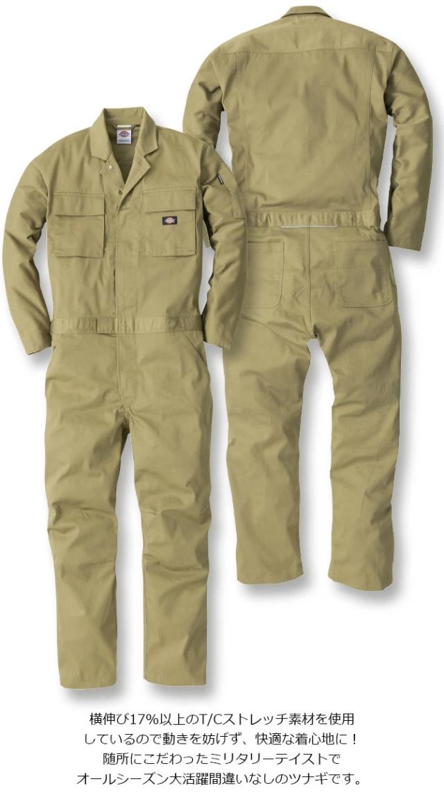 ディッキーズ 長袖 T/Cストレッチ ツナギ D-766 メンズ レディース Dickies オールシーズン オールインワン カバーオール ワークウェア アウトドア 作業服 作業着
