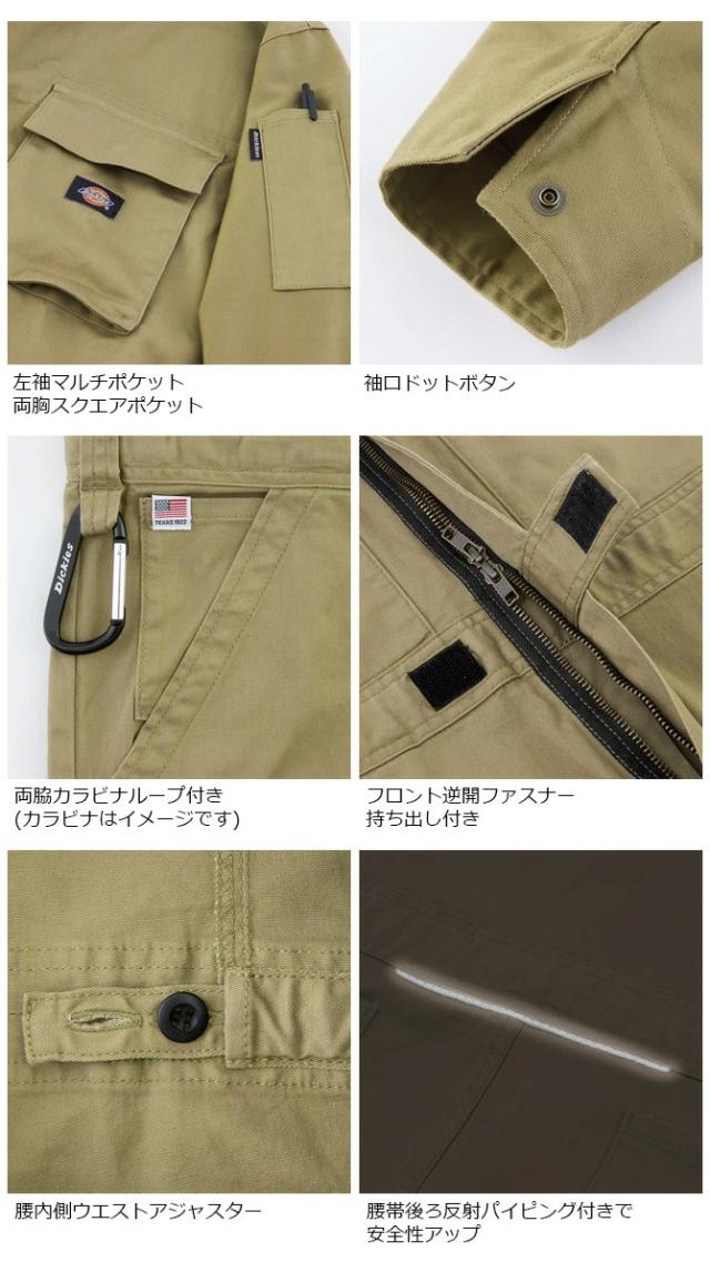 | アメリカを代表するワークカジュアルブランド「Dickies (ディッキーズ)」のT/Cストレッチツナギです。 タフなイージーケア素材に加え、ストレッチ性(伸長率約17%)があり動きやすいのが特長です。上下どちらからでも開ける逆開ファスナー、ウエストアジャスター、両脇カラビナループ、マルチポケットなど機能も充実しています。 随所にこだわったミリタリーテイストで、男女問わずオールシーズン使え、どんな体型の人にもお洒落にフィットしますので、ワークやアウトドアなどオンオフ問わずあらゆるシーンで活躍します。 ※SS・Sは女性対応シルエットになります。 | |||||||