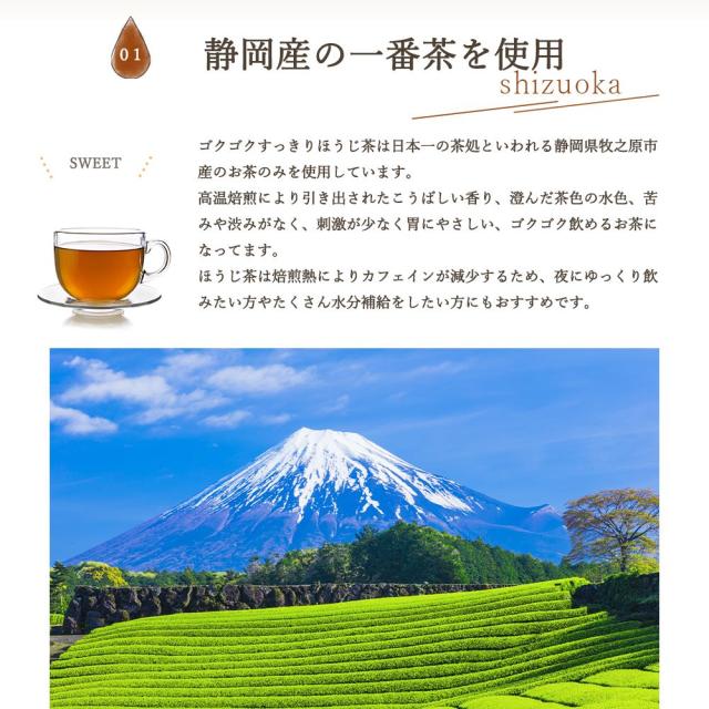 - 味がすっきりしていてとても飲みやすいです。 ほうじ茶を注文したのですが、香りも自分好みで気に入っています。 また購入させていただきますね!