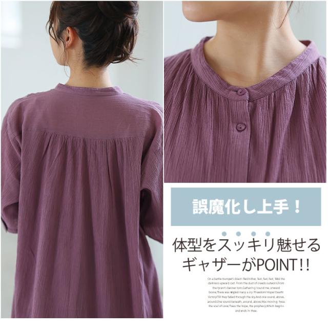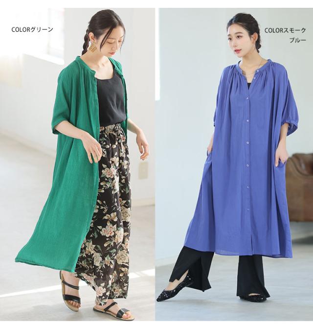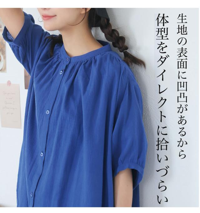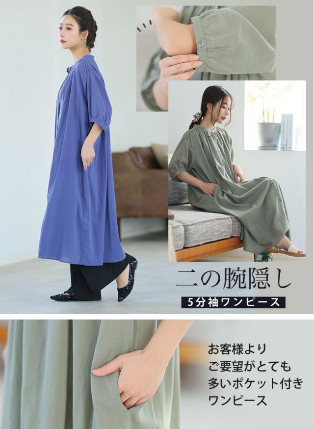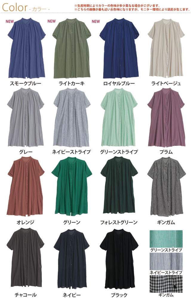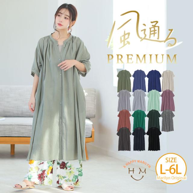 新作 大きいサイズ レディース ワンピース | 新色追加!!【風通るプレミアム】綿 楊柳 五分袖 ギャザー たっぷり ワンピース [496001] LL 3L 4L 5L 6L