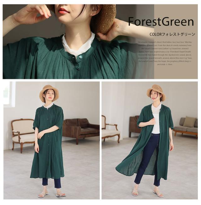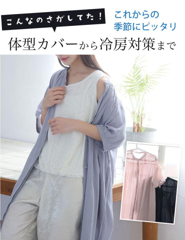 - 夏の羽織用にと購入。 サラッとしていて軽く、少し透けるくらい薄手で着やすいです。 肩周りのギャザーは逆に、肩から胸にかけてのボリュームを強調するような感じで余計肉厚に見えるので、少しだけ入れるか又は要...