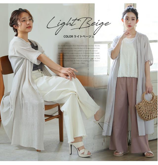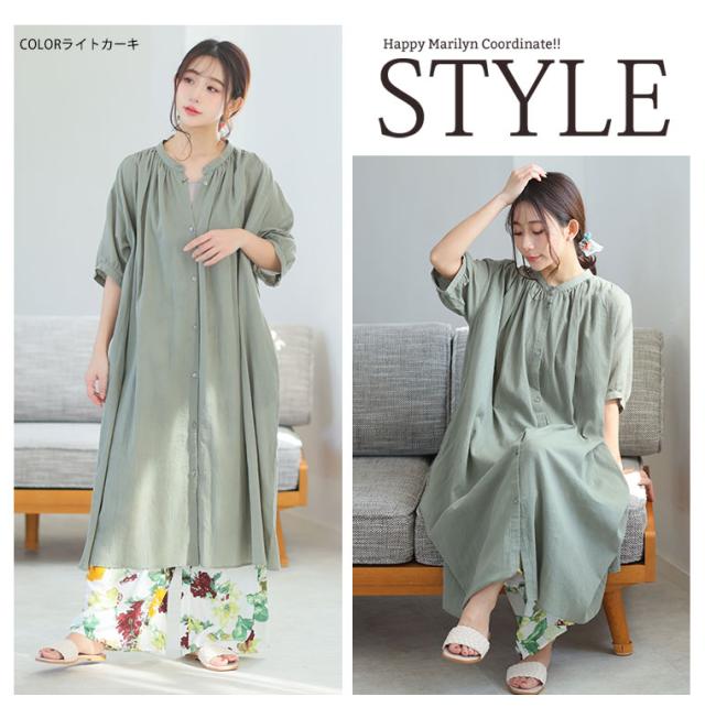 ■着用感:ちょうどいい、■着丈:ふくらはぎ中、■バスト:ややゆったり、■腕回り:ちょうどいい、■袖口:ちょうどいい、■袖丈:肘上、■首回り:ちょうどいい、■ウエスト:-、■ヒップ:-、■太もも:- ●さらさら涼し気な素材で気持ちよく軽やかな着心地です。
