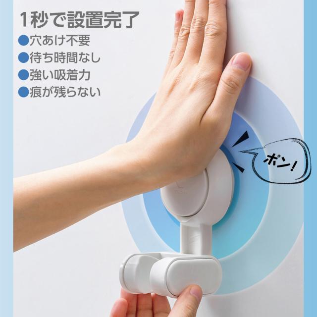 【タコの吸盤を応用した強い吸着力】穴あけ・糊付け不要。壁に押し付けるだけの簡単設置。