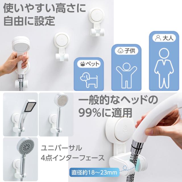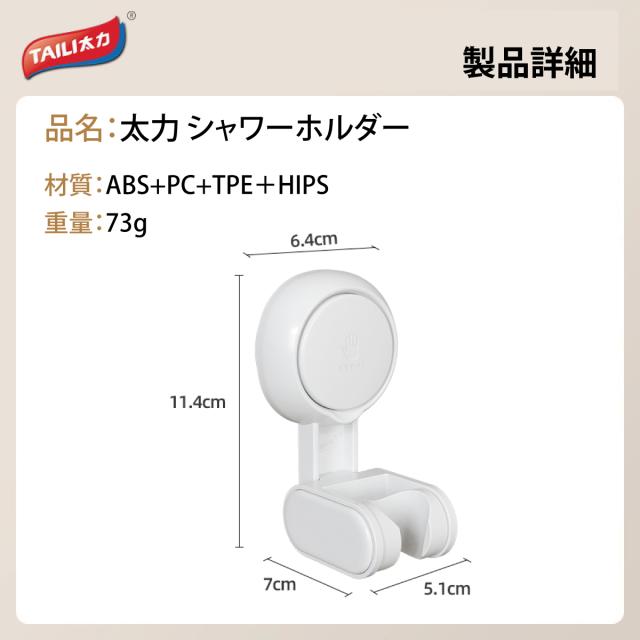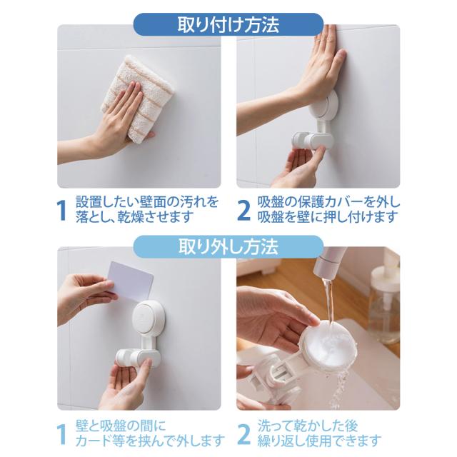シャワーフック 吸盤 交換 シャワーラック シャワーホルダー 角度調整 吸着 穴あけ不要 工事不要 シャワーハンガー 吸盤フック バスルームシャワーフック 取り外し可能 バス用品 風呂用品 簡単取付 浴室用ラック taili-shower