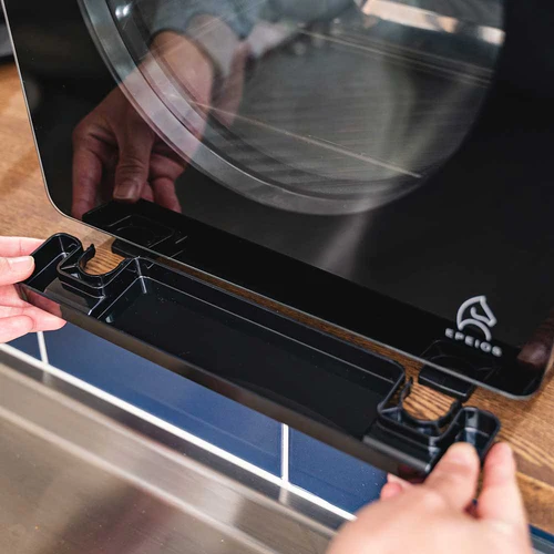 前方下部に設置された排水トレー。広々庫内で吹きやすいデザイン。いつでもクリーンで安心・安全にお使いいただけます。