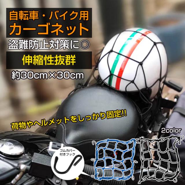 カーゴネット 自転車ネット 自転車用 バイク用 ヘルメット用 盗難防止 防犯 ネット 30cm×30cm ゴムネット ツーリングゴムネット ひったくり防止 sg024