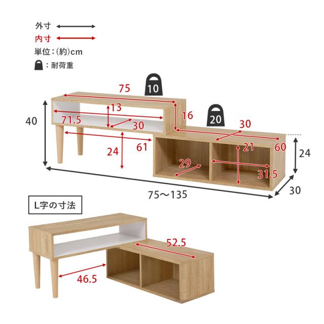 テレビ台 ローボード おしゃれ テレビボード 収納 伸縮テレビ台 伸縮テレビボード 伸縮 テレビ TV台 コーナー TVボード ロータイプ 白 32型 幅75 幅135 32インチ オープンラック オープン収納 収納家具 TV テレビ
