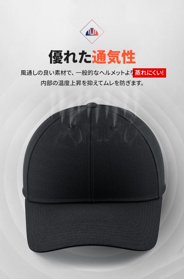 - 風通しの良い素材で、 一般的なヘルメットより蒸れにくい! 内部の温度上昇を抑えてムレを防ぎます。