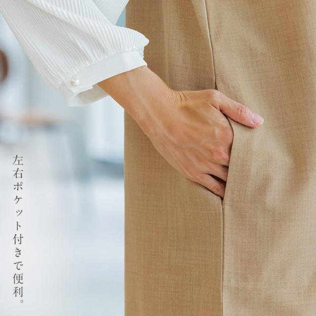 ヒップラインがカバーできるロング丈。左右ポケット付きで便利です。