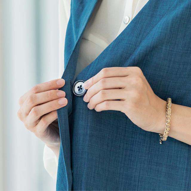 大きめのマーブル調ボタンも雰囲気が出てコーディネートにプラスしやすい!