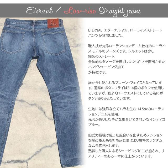 ETERNAL エターナル より、 ローライズストレートパンツが登場しました。