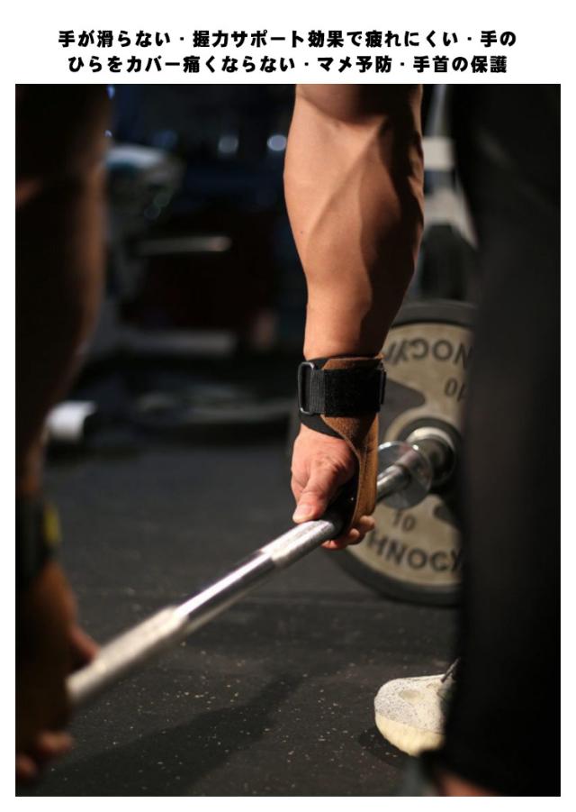 | 手首に負荷がかからないように厚めのパワーグリップ 分厚いレザーで作られているので頑丈かつとても手に馴染みます グリップ力を高める為に特殊素材を使用。滑りにくく、グリップ力が強いことが特徴 手が滑らない・握力サポート効果で疲れにくい・手のひらをカバー痛くならない・マメ予防・手首の保護 中上級者だけでなく、トレーニングを始めた初心者にもお勧めです。男女問わずお使いいただけます | |