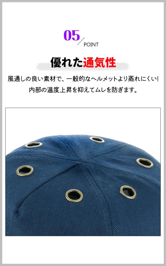 - 風通しの良い素材で、 一般的なヘルメットより蒸れにくい! 内部の温度上昇を抑えてムレを防ぎます。