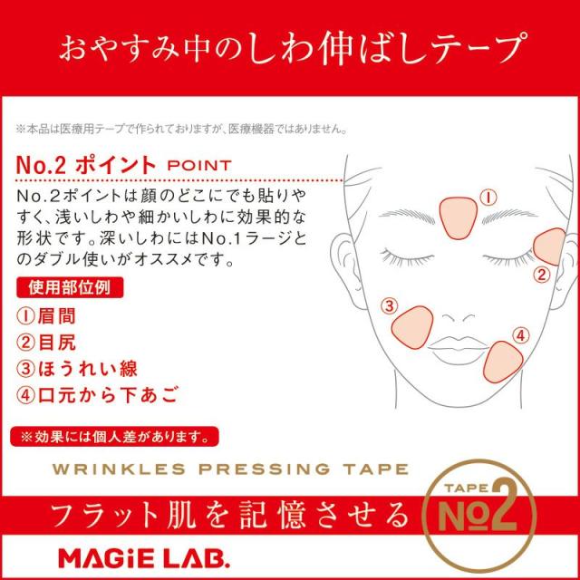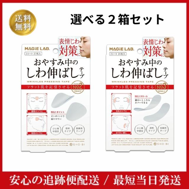 マジラボ お休み中の しわ伸ばし テープ No.2 ポイントタイプ 27枚入 No.3 スモールタイプ 24枚入 【選べる2箱】 MAGiE LAB ほうれい線 医療用テープ シワ改善 シワ対策 しわ シワ 集中ケア エイジングケア 表情じわ 予防 ハリ肌 ヨレ 美顔 リセット