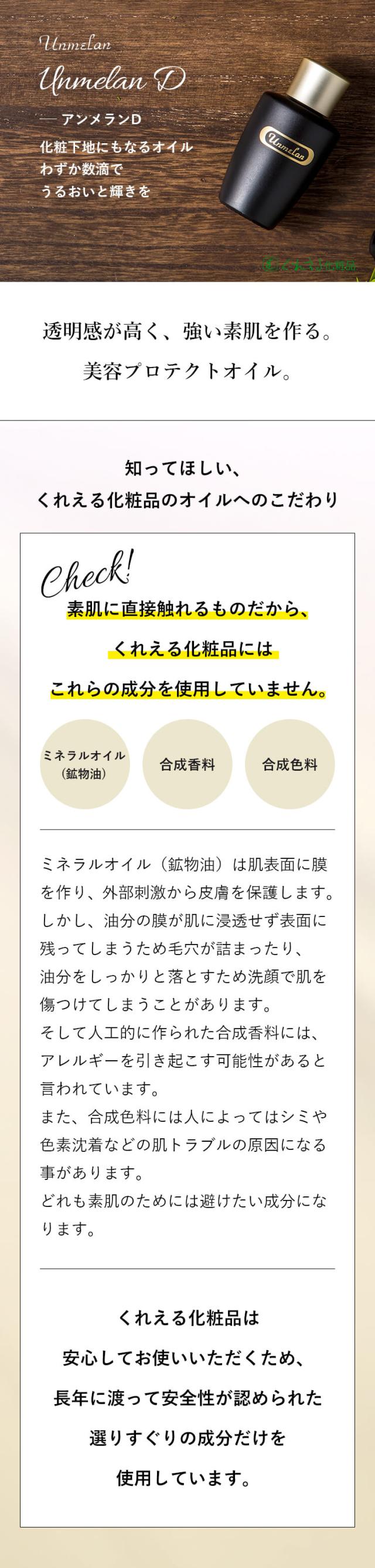 くれえるアンメランD 15ml 美容オイル 通気性95% ベタつかない 植物由来 保湿 紫外線 ケア 化粧下地 崩れない ツヤ 潤い エイジングケア