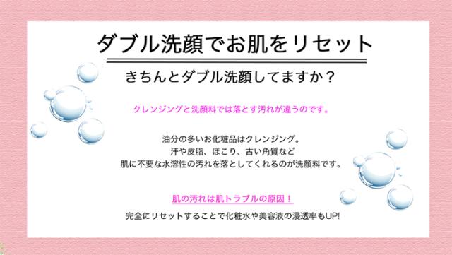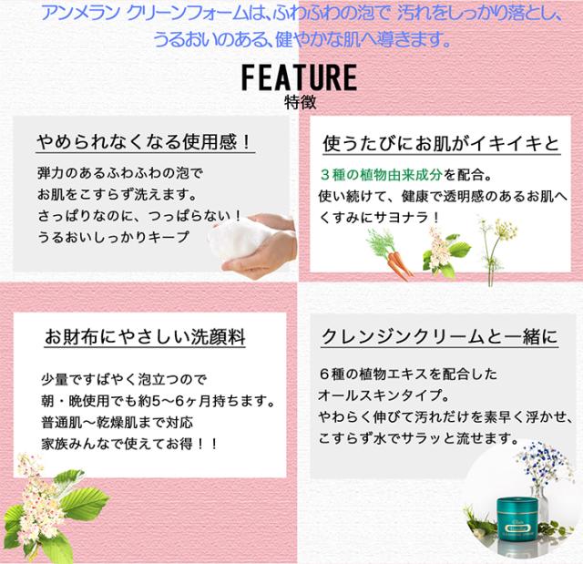 | 使用方法 | 大豆粒程の量を手のひらに取り、水またはぬるま湯を加えてよく泡立て、 泡で軽く顔を包むようにやさしく洗い、水またはぬるま湯で十分に洗い流してください。 |