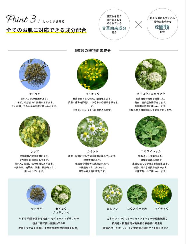 | 表示成分 | 水、BG、ステアリン酸、ミリスチン酸オクチルドデシル、ステアリン酸ソルビタン、ミリスチン酸セチル、ステアリン酸グリセリル(SE)、ポリソルベート60、セテス-6、ラウレス-5、グリチルリチン酸2K、ウイキョウ果実エキス、ホップエキス、メリッサ葉エキス、セイヨウヤドリギ果実エキス、カミツレ花エキス、セイヨウノコギリソウエキス、尿素、ジメチコン、水酸化K、エタノール、クオタニウム-73、ステアリン酸Na、メチルパラベン、ブチルパラベン |