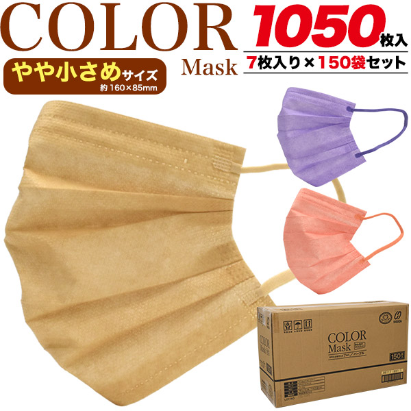マスク 1050枚セット カラーマスク 血色マスク ピンク パープル やや小さめ 花粉 飛沫対策 使い捨て 不織布 3層構造 ますく カートン販売 7枚 150袋セット 感染予防 ウイルス対策 消耗品 通勤 通学 黄砂 埃 アレルギー 風邪予防 衛生用品 介護 医療施設 業務用 持ち歩き 予備