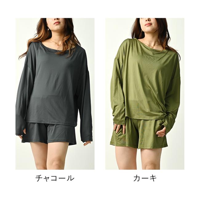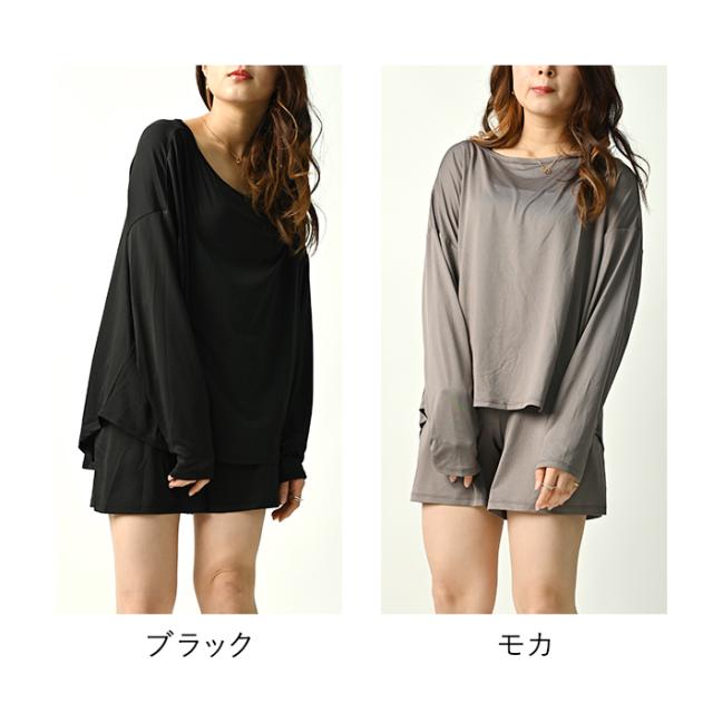 ラッシュガード レディース 上下セット 通販 長袖 おしゃれ パーカー プルオーバー 無地 シンプル ショートパンツ セットアップ 紫外線対策 uvカット オフショルダー 水陸両用 水着 羽織 HW8260 マリンスポーツ スポーツ アウトドア