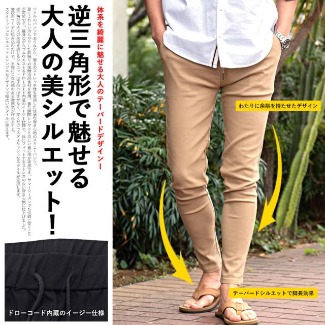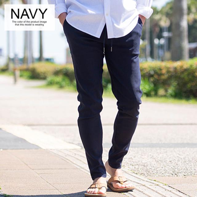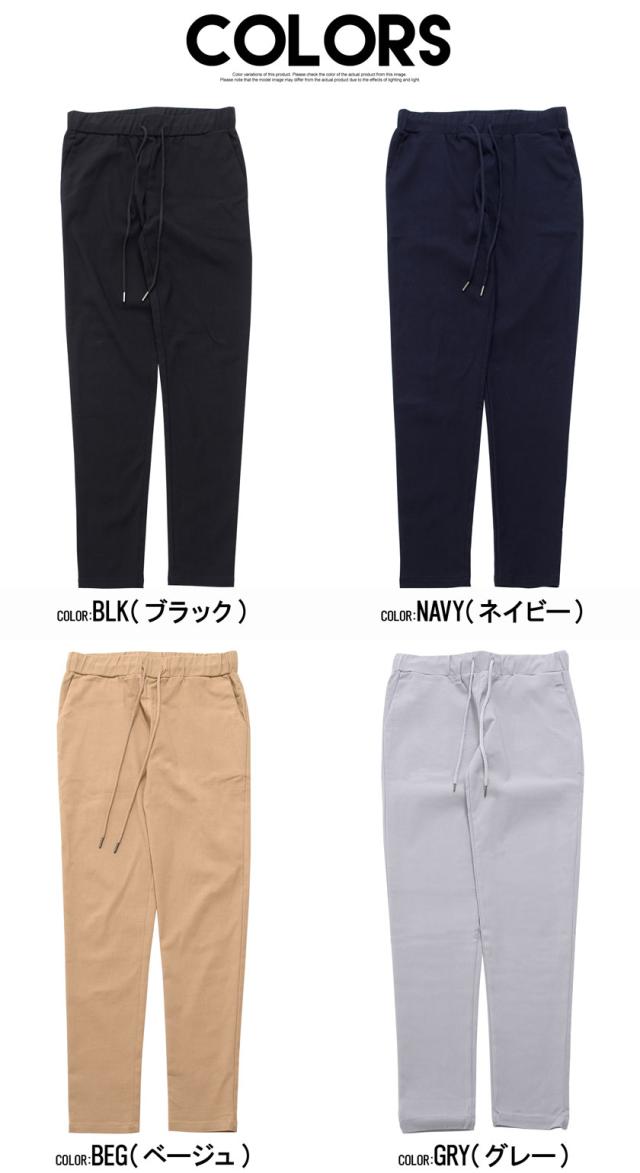 細身ながらゴムウエスト&ドローコード内蔵のイージー仕様で、体にフィットするストレスのない穿き心地に仕上げました。
