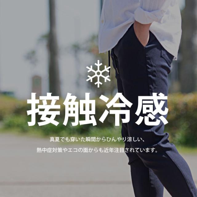 着た瞬間ヒンヤリと涼しい着心地が実感でき、サマーシーズンでも快適に穿くことが可能です。