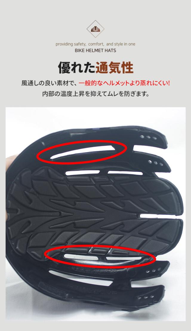 - 風通しの良い素材で、 一般的なヘルメットより蒸れにくい! 内部の温度上昇を抑えてムレを防ぎます。