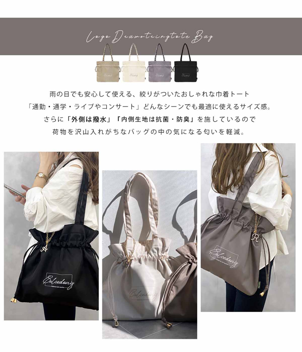 【選べるイニシャルチャーム付き】トートバッグ レディース 大容量 ナイロン 梅雨 撥水 抗菌 防臭 帆布 巾着 バッグチャーム トート バッグ A4 大きめ 鞄 かばん 雨の日 うちわ かわいい おしゃれ 送料無料 プレゼント ギフト
