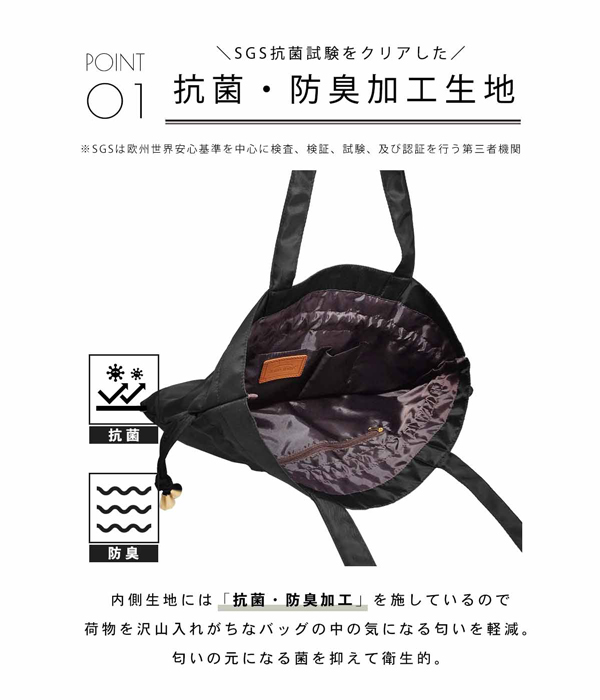 バッグの内側には「抗菌・防臭加工」を施しているので気になるニオイを軽減。