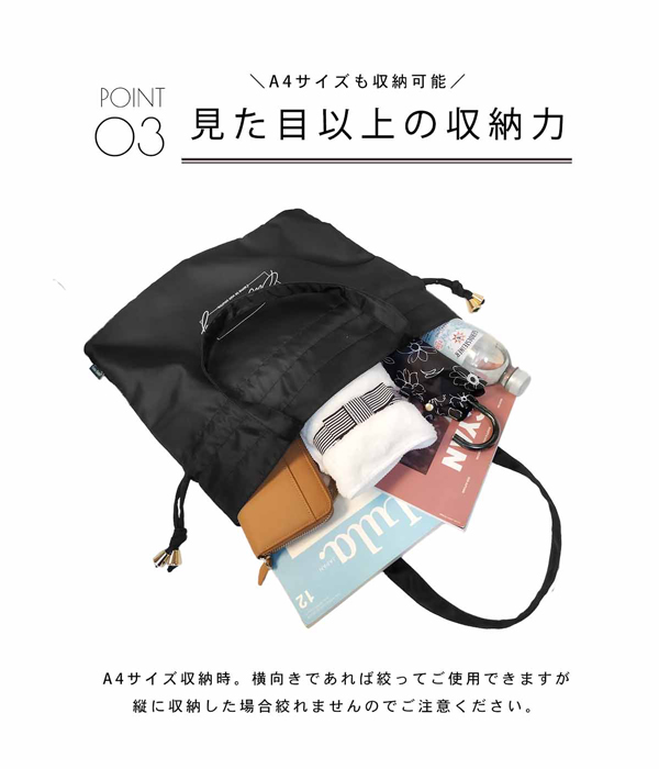 - ブラックとアイボリーを購入。軽いし沢山入るし使い勝手がいいです。どんな服装に合うのもいいですね。