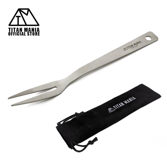 TITAN MANIA チタンマニア ミートフォーク チタン製 超軽量 フォーク ミニフォーク カービングフォーク ピックフォーク キャンプ アウトドア バーベキュー ソロキャンプ 調理器具 キャンプ用品 収納袋付き