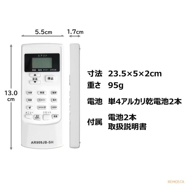 シャープ エアコン リモコン A909JB 電池付き AY-F25S-W AY-F28S-W AY-F22DG AY-F25DG AY-F28DG AY-F40DG AY-F22TD AY-F25TD AY-F28TD AY-F40TD AY-F22DG AY-F25DG AY-F28DG AY-F40DG AY-E28SD AY-E22TD AY-E25TD AY-E28TD AY-E40TD など SHARP 代用リモコン REMOSTA