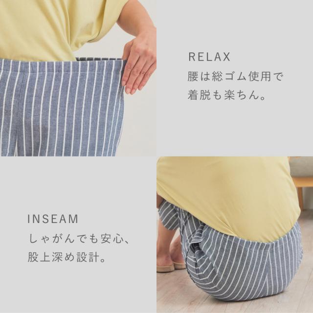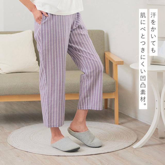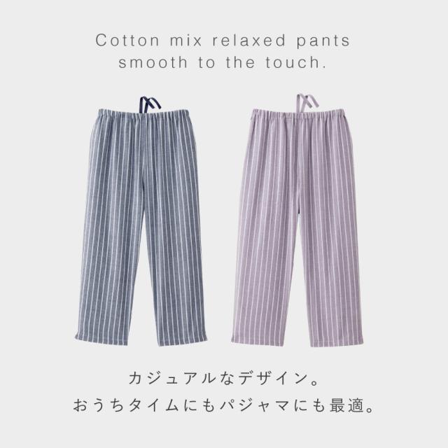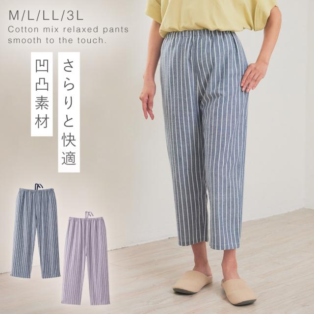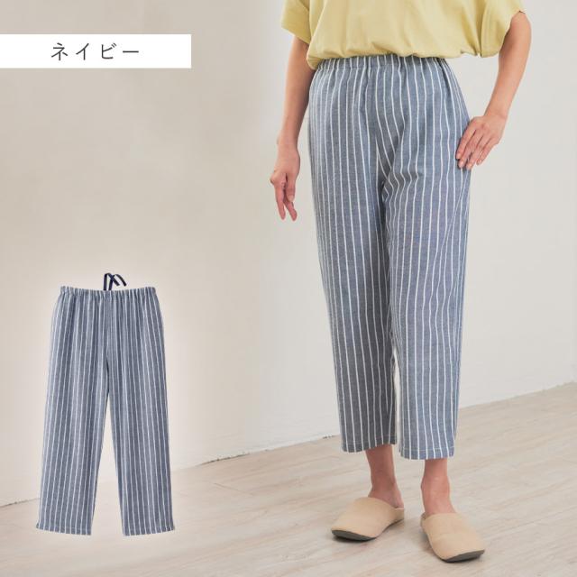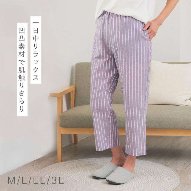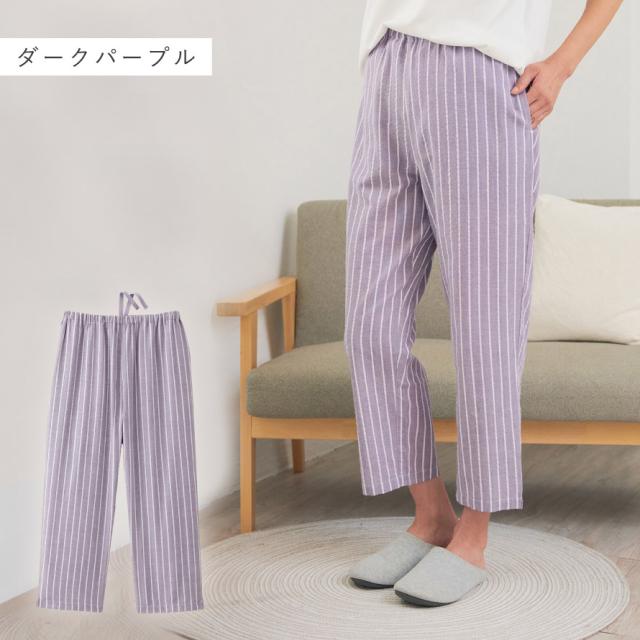 ルームパンツ レディース,ルームパンツ 部屋着,ルームパンツ 大きいサイズ,パンツ,ルームパンツ,ズボン,下,下だけ,下のみ,ズボンだけ,ズボンのみ,パジャマ,ルームウェア,ホームウェア,部屋着,ポケット付き,ポケット,涼しい,涼しげ,綿混,綿,コットン,春,夏,春夏,八分丈,8分丈,ストライプ,ネイビー,紺,ダークパープル,パープル,紫,M,L,LL,3L,大きいサイズ,大きめ,ゆったり,ウエストゴム,総ゴム,ウエスト,ゴム,締め付けない,しめつけない,苦しくない,大人,レディース,女性,おしゃれ,お洒落,オシャレ,かわいい,可愛い,シンプル,カジュアル,着心地,ミセス,婦人,